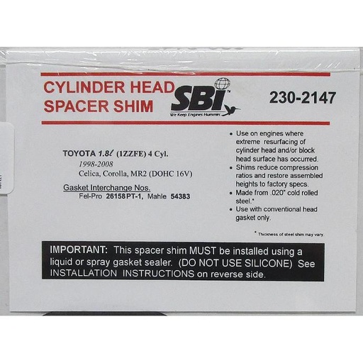 Cylinder Haed Spacer Shim compatible With : 1998 Toyota Corolla, 2003-2207 Matrix L4, 1.8L / 1794c.c., DOHC 16 Valve, 2000-2004 Celica L4, 1.8L / 1794c.c., DOHC 16 Valve